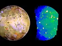 - ↑ Geissler, P. E.; et al. (1999). "Global Color Variations on Io". Icarus. 140 (2): 265–82. Bibcode:1999Icar..140..265G. doi:10.1006/icar.1999.6128.