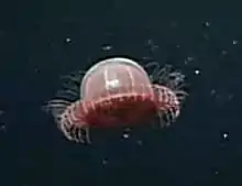 - ↑ Lindsay, Dhugal & Francesc Pagès, 2010. "Voragonema tatsunoko (Trachymedusae: Rhopalonematidae) a new species of benthopelagic medusa, host to the hyperiid amphipod Mimonectes spandli (Physosomata: Mimonectidae)." Zootaxa 2671: 31-39.