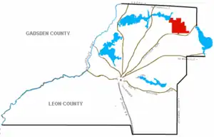 The plantation was located west of the settlement of Miccosukee and not bordering any other plantations. Today that land encompasses private property north of Moccasin Gap Road and Veteran's Memorial Drive.