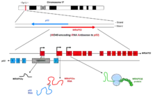 - 1 2 3 Mahmoudi S, Henriksson S, Corcoran M, Méndez-Vidal C, Wiman KG, Farnebo M (February 2009). "Wrap53, a natural p53 antisense transcript required for p53 induction upon DNA damage". Molecular Cell. 33 (4): 462–71. doi:10.1016/j.molcel.2009.01.028. PMID 19250907.