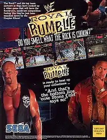 WWF Royal Rumble is a professional wrestling video game released in 2000 for arcades and the Dreamcast. THQ published the title for the Dreamcast while Sega released it for arcades. It is based on the World Wrestling Federation (WWF) professional wrestling promotion and its yearly Royal Rumble event. This game took its influence from the event's 2000 edition.[3] Yuke's, creators of the WWF SmackDown! series, developed Royal Rumble, which had several unique features including support for up to nine wrestlers on the screen simultaneously.[4]