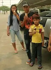 In the traditional Wa society monogamous marriage was the norm and there was sexual freedom for both men and women before marriage. The chewing of betel with areca nut was formerly also an important custom.[9] The Wa have different kinds of traditional dances. One important dance in their culture is accompanied by the beating of a large hollow wooden drum. This way of dancing, among other Wa dances[10] such as the hair dance[11] and festivals,[12] is being promoted as a tourist attraction by the Yunnan tourism authorities in China.[13]
