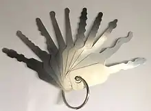 A set of try-out keys, or jigglers, which can be used to open most types of wafer tumbler lock