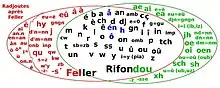 The Walloon language has employed various alphabets over its history, most notably the Feller system (sistinme Feller) and Unified Walloon (rifondou walon or rfondou walon). The Feller system was developed to transcribe Walloon dialects by Jules Feller and was first published in 1900.[1] The same word can be spelled differently depending on dialect, so the word "fish" would be spelled <pèchon> by a speaker who pronounces the word as [pɛʃɔ̃] (with an 'sh' sound), but would be spelled <pèhon> by a speaker who pronounces the word as [pɛhɔ̃] (with an 'h' sound). In Unified Walloon, however, the same word "fish" is always spelled <pexhon>, regardless of the speakers pronunciation. The Unified Walloon alphabet, developed through the 1980s and 90s, attempts to unify spellings across dialects, and revives some older digraphs (such as <xh>) which were abandoned by Feller in favor of spellings which resembled standard French.[2][3]