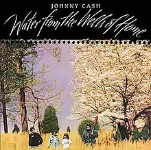 Water from the Wells of Home is the 75th album by American country singer Johnny Cash, released on Mercury Records in 1988 (see 1988 in music). It features several collaborations with other artists, including "New Moon Over Jamaica" with Paul McCartney. Other guests include Waylon Jennings, Hank Williams Jr., Glen Campbell, Emmylou Harris and family members Rosanne Cash, John Carter Cash, June Carter Cash and members of the Carter Family. "Call Me the Breeze" is a J. J. Cale song that had been previously performed by Lynyrd Skynyrd. "Ballad of a Teenage Queen" is a new recording of a song that had appeared on Cash's Sun era album Sings the Songs That Made Him Famous. The album did not fare well on the charts, peaking at No. 48; the two singles, "Ballad of a Teenage Queen" and "That Old Wheel", reached No. 45 and No. 21, respectively. A 2003 re-release of the album contained a bonus track, consisting of Johnny Cash discussing various songs on the album.