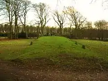 The site's appearance is a result of restoration following excavations undertaken by archaeologists, Stuart Piggott and Richard Atkinson, in 1962–63. Their research of the site showed it had been built in two different phases. First as a timber-chambered oval barrow built around 3590 and 3550 BC and then later as a stone-chambered long barrow in around 3460 to 3400 BC.[3] The barrow is on the same hill range as Uffington White Horse and Uffington Castle; it is also close to The Ridgeway, the ancient trackway across the Berkshire Downs.
