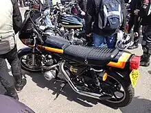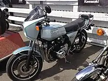 Whilst at Kawasaki, as director of technical operations, Moulton introduced the LTD motorcycle series.[3] These brought custom-styling touches to the in-line four-cylinder Kawasaki Z1 standard street-bike/roadster model. The LTD style was typified by shortened mudguards (fenders), stepped seat, high handlebars, a 'tear-drop' petrol tank, large rear tyre and short megaphone exhausts. Moulton was quick to emphasise that his design was not influenced by the American manufacturer, Harley-Davidson but rather privately customised British motorcycles like the Triumph and Birmingham Small Arms.[1] The first Moulton-designed model, the KZ900LTD was introduced in 1975 and was immediately successful with demand outstripping supply.[1] Moulton's LTD styling spawned similar designs from Kawasaki's competitors, with Yamaha's 'Special' series being extremely successful.[1]