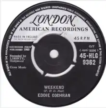 - ↑ "Eddie Cochran - Weekend". 45cat.com. Retrieved February 8, 2020.