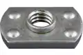 Tab base nuts are designed for spot welding on flat workpieces. They have a locating boss around the threads to locate it in a pilot hole.[1]