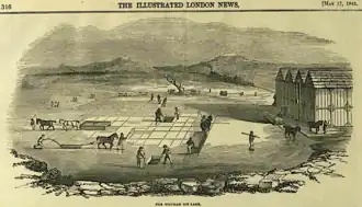 At the end of the 1840s, the ice from Wenham Lake became a luxurious commodity in London. The company opened offices all over Great Britain and Ireland.[2] In large institutions for poor sick people, wrote Florence Nightingale (1859), Wenham Lake ice stopped the milk curdling in summer.[3] By 1888 Mrs Beeton printed a cocktail recipe that used Lake Wenham ice; some Victorian households had refrigerators cooled with it.[4]