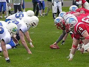 The Trojans offence lines up against the defence of the Dundee Hurricanes