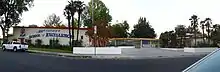 The exterior walls use stone quarried from the site. The residence wraps around a large central courtyard with a fountain and outdoor fireplace, and the various rooms opening onto it. The materials were chosen with care and painstakingly employed in such a manner as to make the resulting structure appear very old. The imported Spanish and Italian furnishings and artworks are of particular interest, dating from the 14th to 19th centuries. The estate's residence was to become a public museum housing the Canoga-Owensmouth Historical Society, a community arts center, and its gardens and open space a city park; however it is currently for sale by the heirs (2013).[59][60] - Francis Lederer Stables — LAHCM No. 135, designed and built in a rustic and authentic Mission Revival architectural style. It was also designed by Francis Lederer and John R. Litke in 1936 and used locally quarried stones.[61] It was originally on the natural bank of free-flowing Bell Creek, before its channelization in the late 1950s.[62] Through Mrs. Lederer's efforts in the 1970s, the stables opened to the community as the Canoga Mission Gallery—now the Hidden Chateau event venue, on western Sherman Way.[63]