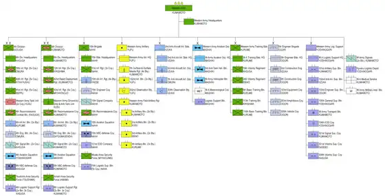 The Western Army (西部方面隊) is one of five active Armies of the Japan Ground Self-Defense Force. It is headquartered in Kumamoto, Kumamoto Prefecture. Its responsibility is the defense of Kyūshū and Okinawa.