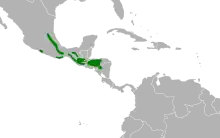 The white-faced quail-dove is found discontinuously in several southern states of Mexico, much of Guatemala and Honduras, and small areas of northern El Salvador and northwestern Nicaragua. It inhabits humid montane forest of several types including evergreen and pine-evergreen, and also shade coffee plantations. In elevation it ranges between 1,000 and 2,700 m (3,300 and 8,900 ft).[3]