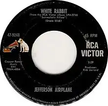 "White Rabbit" was written and performed by Grace Slick while she was still with The Great Society. Slick then left The Great Society to join Jefferson Airplane to replace their departing female singer, Signe Toly Anderson (who left the band to give birth to her child). The first album Slick recorded with Jefferson Airplane was Surrealistic Pillow, and Slick provided two songs from her previous group: her own "White Rabbit" and "Somebody to Love", written by her brother-in-law Darby Slick and recorded under the title "Someone to Love" by the Great Society.[7] The Great Society's version of "White Rabbit" was much longer than the more aggressive version of Jefferson Airplane. Both songs became top-10 hits[8] for Jefferson Airplane and have ever since been associated with that band.[9]