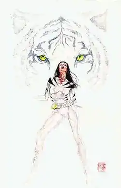 Angela del Toro is a character appearing in American comic books published by Marvel Comics. Created by Brian Michael Bendis and Alex Maleev, the character first appeared in Daredevil vol. 2 #58 (March 2004).[1] Angela del Toro is the fourth incarnation of White Tiger.[2] She is the niece of Hector Ayala and Ava Ayala.[3]