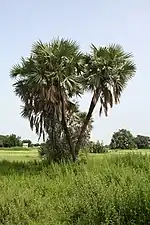 Dense forests are not recorded in Benin. Along the coastal areas coconut, palmyra palms, oil palms are seen up to Abomey, where after vegetation is savanna merged with that of Guinea and Sudan. Other tree species noted are West African ebony, shea tree, Bombax costatum, called the kapok or fromager tree, and Khaya senegalensis, the Senegal mahogany.[12]