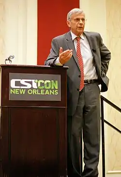 While on The X-Files, Davis was constantly challenged by fans of the show about his non-belief in the paranormal and aliens.[22] Davis credits Barry Beyerstein and the Committee for Skeptical Inquiry (CSI) for introducing him to the skeptic community. Davis became increasingly involved in the skeptic movement and began to give lectures as a skeptic spokesman at universities across North America and at skeptic conventions, including CSI's CSICon in New Orleans.[23]
