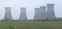 In the 1950s, two coal-fired power stations were built on a site off Twyford Road, between Willington and Findern. The stations were privatised and sold to National Power in the early 1990s and eventually closed in the mid-1990s. Although most of the stations were demolished at the turn of the millennium, the five cooling towers continue to dominate the skyline of the local area. The site[14] was earmarked for a large residential development, but the application was rejected and in 2011 permission was granted for a new power station to be built on the site.