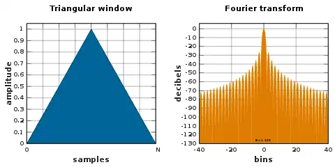 - ↑ "Triangular window – MATLAB triang". www.mathworks.com. Retrieved 2016-04-13.