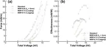 The conventional single dielectric barrier discharge (DBD) actuator design is composed of two electrodes separated by a single dielectric material. Much work has gone into optimizing the design and performance of the single DBD design,[12] however research work continues to improve the performance of these actuators. The MBPA design is an extension of the single DBD actuator design which introduces additional dielectric barriers and electrodes, and thus additional design parameters. Research indicates that MBPA designs may achieve higher resultant thrust and improved thrust-to-power ratios than the single DBD actuator design.[11][13][14] Sample trials of a bi-layer MBPA design demonstrated an approximately 40% increase in effectiveness over the conventional single layer design.[2][13]