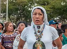 Throughout history, Hindu women have held public religious positions as practitioners and conductors of Vedic Rituals.[51] Hindu society has seen many female rulers, such as Rudramadevi, Rani Abbakka, Rani Durgavati, Rani Ahilyabai Holkar, Rani Chennamma of Keladi, women saints, such as Andal, philosophers, such as Maitreyi, and religious reformers.[51] While Hinduism portrays women as figures who play an important role in understanding how the world works, women in Hindu society have often been marginalized and their importance has been diminished, as a result of "girls being made to feel lesser and not as important as boys".[52] According to a 2017 study by the Pew Research Center, women (aged 20 years and over) are slightly less prevalent among worldwide Hindu population (49%).[9]