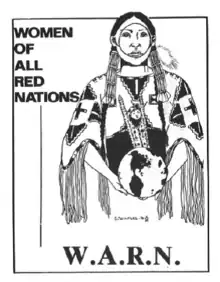 Women of All Red Nations (WARN) was a Native American women's organization that fought for Native American civil and reproductive rights. It was established in 1974 by Lorelei DeCora Means, Madonna Thunderhawk, Phyllis Young, Janet McCloud, Marie Sanchez and others.[1][2] WARN included more than 300 women from 30 different tribal communities.[3] Many of its members had previously been active in the American Indian Movement and were participants in the 1973 Wounded Knee incident. The inaugural conference took place in Rapid City, South Dakota.[3]