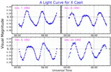 - ↑ VSX:Detail for X Cae, retrieved 2018-08-24.
