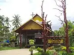 The seal of the province shows two mythical lions, called singh, facing the chedi Prathat Anon, in the temple Wat Maha That in the city of Yasothon. In the legendary account of the founding of the city, a lion came out of the forest when the site was chosen; hence the city was called Ban Singh Tha (Thai: บ้านสิงห์ท่า), Home (of) Imposing Lion. At the bottom of the seal is a lotus flower (Nymphaea lotus), as the lotus is both the provincial flower of the province and of Ubon Ratchathani province, of which Yasothon was part until 1972.[8] The provincial tree is Anisoptera costata.