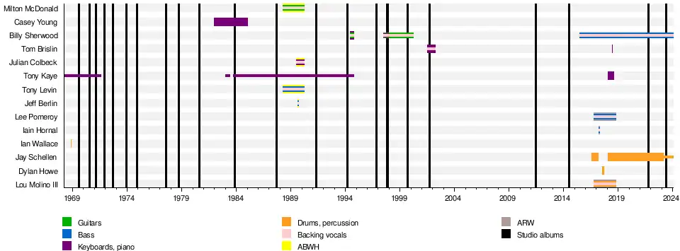 Yes are an English progressive rock band formed in London in 1968 by lead singer Jon Anderson, bassist Chris Squire, guitarist Peter Banks, keyboardist Tony Kaye, and drummer Bill Bruford. The band has undergone numerous lineup changes throughout their history, during which 20 musicians have been full-time members. Since February 2023, the band has consisted of guitarist Steve Howe, keyboardist Geoff Downes, bassist Billy Sherwood, singer Jon Davison, and drummer Jay Schellen. Yes have explored several musical styles over the years and are most notably regarded as progressive rock pioneers.