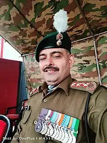 Captain Yadav during the rehearsal of the Army Day Parade 2024 in Lucknow, wearing his PVC Medal (left side)
