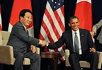 - 1 2 3 Hayashi, Yuka (29 August 2011). "Japan's Noda: Low-Key on Domestic Issues, Controversial Abroad". The Wall Street Journal. Retrieved 29 August 2011.