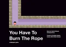 You Have to Burn the Rope is a platform game for Adobe Flash developed by Swedish designer Kian Bashiri under the moniker "Mazapán". The game was a finalist for the Innovation Award at the 2009 Independent Games Festival.[1] and received a considerable amount of "Internet buzz" for its humorous gameplay at the time of its release. You Have to Burn the Rope is a brief parody of excessive hand-holding in AAA video games, in which destroying the titular rope is the only way to win and the player is told that fact in advance.