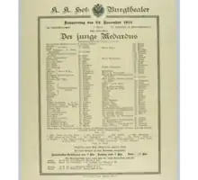 Young Medardus (German: Der junge Medardus) is a historical drama in a prelude and five acts by Austrian playwright Arthur Schnitzler. It premiered at the Burgtheater in Vienna on 24 November 1910,[1] where it was directed by Hugo Thimig[2] It tells the tale of Medardus, a flawed hero in the Shakespearean sense, who directs his final heroic deed against himself and perishes.