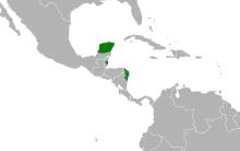 The Yucatan bobwhite is native to Central America where its range extends from the Yucatan Peninsula southwards to Honduras and Nicaragua. Its typical habitat is clearings in forests, pine savannah, rough grassland, weedy fields and plantations of henequen (Agave fourcroydes).[2]