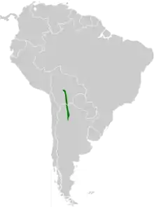 The Yungas screech owl is found from south-central Bolivia's Cochabamba Department south into northwestern Argentina as far as Tucumán Province and possibly further to Catamarca Province. It inhabits moist montane forest and cloud forest characterized by tall trees and epiphytes. In elevation it generally ranges from 1,000 to 2,600 m (3,300 to 8,500 ft) but locally is found as high as 2,800 m (9,200 ft). Though the species is mostly sedentary, birds nesting in the higher elevations are thought to move lower in winter.[4]