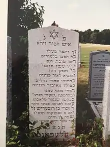 - ↑ The following is the Hebrew language quote: "ידידי הרה"ח ר' זכריהו עלעפאנט מברוקלין כתב לי, וזה לשונו 'הנה הרבה פעמים באים אלי אנשים כדי לכתוב להם נוסח על מצבות, ועשיתי לעצמי גדר להוכיחם ולהגיד להם שאסור לחרות על האבן יום הפטירה במנין השנים שמונים נוצרים... מאד אני מתפלא על הרבנים הגאונים בפה שאין אחד מהם פוצה פה ומצפצף על הנבלה הזאת להוכיח את משפחת הנפטר ולהורות להם הדרך למחוק מהמצבה חשבון השנים...'".