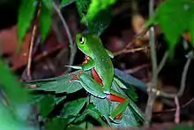 Zhangixalus aurantiventris (common names: orange-belly treefrog, orange-bellied treefrog) is a species of frog in the family Rhacophoridae. It is endemic to Taiwan.[1][3][4][5] It is known from scattered localities across Taiwan at low to mid altitudes.[1]