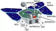 Among the six scientific instruments, RoPeR works during roving; MarSCoDe, MSCam and NaTeCam work when being stationary; RoMAG and MCS work both when moving or still.[24]