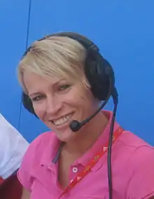 Ajkler working as a commentator at the 2010 European Athletics Championships