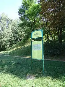 The park is located on green hilly parts of the historical village Znesinnya which was named after the Christian holiday of Ascension.[3] Therefore, it is one of the first areas settled by men inside the present boundaries of Lviv. Being commenced due to a public initiative in 1993, Park Znesinnya is one of the first Regional Landscape Parks in Ukraine founded within the territory of a large city. The NGO "Regional Foundation Znesinnya" started to claim for the protection of the area informally in 1990, getting registered in 1991 as a non-governmental, non-profit organization.[4] The park is managed by the park administration as a subunit of the city department of urban development and supported by „Regional Foundation Znesinnya”. Following Ukrainian legislation on natural environment protected areas the park provides not only typical recreational park functions with tourism, but also environmental protection and environmental education.[5] Park Znesinnya covers a total area of 312 hectares and includes rare specimens of plants, as well as sandstones, limestones containing fossils, hills covered by forests and picturesque valleys with ponds and streams. Regional Landscape Park Znesinnya is located on the main European watershed that separates the Baltic and the Black Sea. Therefore, the green hills of Znesinnya are a part of Roztochia,[6] a mountain range connecting Poland and Ukraine. Parts of Roztochia are under protection, in Poland as a National Park and in Ukraine as a Biosphere Reserve.