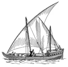 Ceramics, coins, and the remains of foodstuffs from the excavations attest to Zubarah's far reaching trade and economic links in the late 18th century, with material deriving from eastern Asia, Persia, the Ottoman Empire, Africa, Europe, and the Persian Gulf. Diving weights and other material culture show how closely the connection between the daily life in the town and the pearl fishing and trading were. The discovery of coffee cups and tobacco pipes in the excavations reveal the growing importance of these commodities all over the Persian Gulf during the eighteenth and nineteenth centuries. The etching of a merchant's dhow, the traditional wooden boat of Arabia, found incised into the plaster in a room of a courtyard building, details how intimately the town's inhabitants associated their daily lives with long-distance maritime trade and commerce.[71][72] Date trade also had an important role in the local economy.[37]