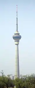 🌍Central TV Tower(中央电视塔 Zhōngyāng Diànshìtǎ),11 West 3rd Ring Rd Central(southwest of the Hangtianqiao Nan (航天桥南) bus stop on 3rd Ring Rd).A tower with an observation deck at the height of 238 meters, providing a view of central Beijing. Below the observation deck is a dedicated television cultural center at 235 m, with a virtual television studio scene. A revolving restaurant at 221 meters provides both food and scenery.¥90 for admission ticket; ¥258 for lunch at the revolving restaurant; ¥308 for dinner at the revolving restaurant.