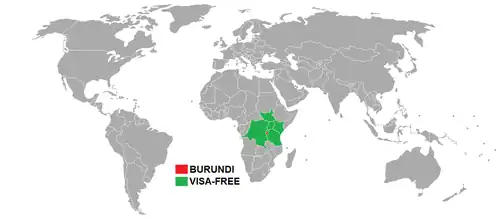 All nationalities require a visa to visit Burundi except citizens of Uganda, Rwanda, Kenya, Tanzania, and the Democratic Republic of the Congo. In Europe, visas are available from the Burundi Embassy in London UK as well as embassies in Berlin, Brussels and The Hague. A 30-day tourist visa from the Burundi Embassy in London costs ÂŁ60. Embassies elsewhere provide a 30 day multiple-entry visa for USD90.