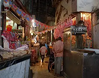 By far the cheapest and most satisfying option, buying from souks and outdoor markets makes for a crash course in Arabic and haggling, not to mention that the produce is often superb! Bread can be found on nearly every corner and comes in two types - whole wheat aysh baladi and white flour aysh shami. Both are baked fresh daily and delivered by thousands of kids on bicycles to every corner of the city. Every neighborhood has a few streets dedicated to produce and other goods. Always wash fruit thoroughly before eating. Eating a fresh Roma tomato in the heat of Summer straight from a market seller after being washed is a delight, hard to match. The fruits and vegetables in Egypt may not conform to EU or US standards of size, but their taste is far superior.