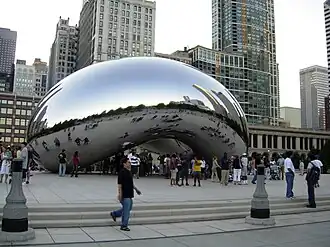 - 🌍 Millennium Park, On the E side of Michigan Ave btwn Randolph St and the Art Institute, ☏ +1-312-742-1168. 6AM-11PM daily. Long before it opened, Millennium Park had become notorious for delays and cost-overruns, missing its titular date by a wide margin. However, when it was finally finished in 2004, the biggest shock of all came when it turned out to be quite nice. Aside from plenty of grass and open space, it has modern sculptures in steel and glass, including Chicago's newest must-photo for visitors, The Bean (properly known as Cloud Gate), and the Frank Gehry-designed Pritzker Pavilion for outdoor concerts. Kids will love getting wet in the Crown Fountain (mid-April to the end of summer) at Michigan and Monroe, in which the giant projected faces of Chicago residents spit water into a shallow reflecting pool where everyone is welcome to splash around. Look for tents offering guides to the park near the entrances at Randolph and/or Washington. From mid-November to early March there is an ice skating rink open to the public (weather permitting) on Michigan Avenue between Washington and Madison Streets. The McCormick Tribune Ice Rink opens at noon on weekdays and 10AM on Saturdays and Sundays with free admission (skate rental is $12, locker rental is $1). Free.