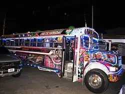 A camioneta is just a bus and that's what locals call their primary mode of transportation. Only tourists (and perhaps locals with much exposure to them) call it a "chicken bus" – a term that may be received as scorn. Whatever the name, an old, often rickety, super cheap bus is the main form of local transport between towns, villages and cities throughout Central America. It is always the cheapest option for travelling for any distance in these countries. Foreign travelers are sometimes shocked that they can travel halfway across a country for the price of bottle of Coke. A chicken bus is usually an old school bus from the USA or Canada which has been brightly painted, often with religious motifs and phrases equating to "Jesus is my driver" and "Jesus protects me", which may justify their use of excessive speed and driving techniques such as overtaking around a blind corner on a narrow road on the top of a hill. A trustworthy chicken bus always has a plastic Jesus stuck to the dashboard. A rosary hanging off a rear-view mirror helps.