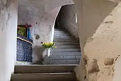 Balcony of Inkerman Cave Monastery - Inkerman Cave Monastery — A cave monastery in a cliff rising near the mouth of the Black River, in the city of Inkerman, administered as part of the sea port of Sevastopol. It was founded in 1850 on the site of a medieval Byzantine monastery where the relics of St. Clement were supposedly kept before their removal to San Clemente by Saints Cyril and Methodius.