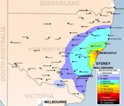 The Modified Mercalli intensity scale is used in the U.S., Australia and New Zealand. The scale values range from I (Not felt) through IV (Light, felt by many indoors) to VIII (Severe, great damage in poorly built buildings) to a maximum of XII (Extreme, total damage).