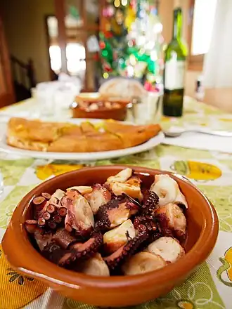 - Polbo á feira is octopus prepared with oil, salt and hot paprika.